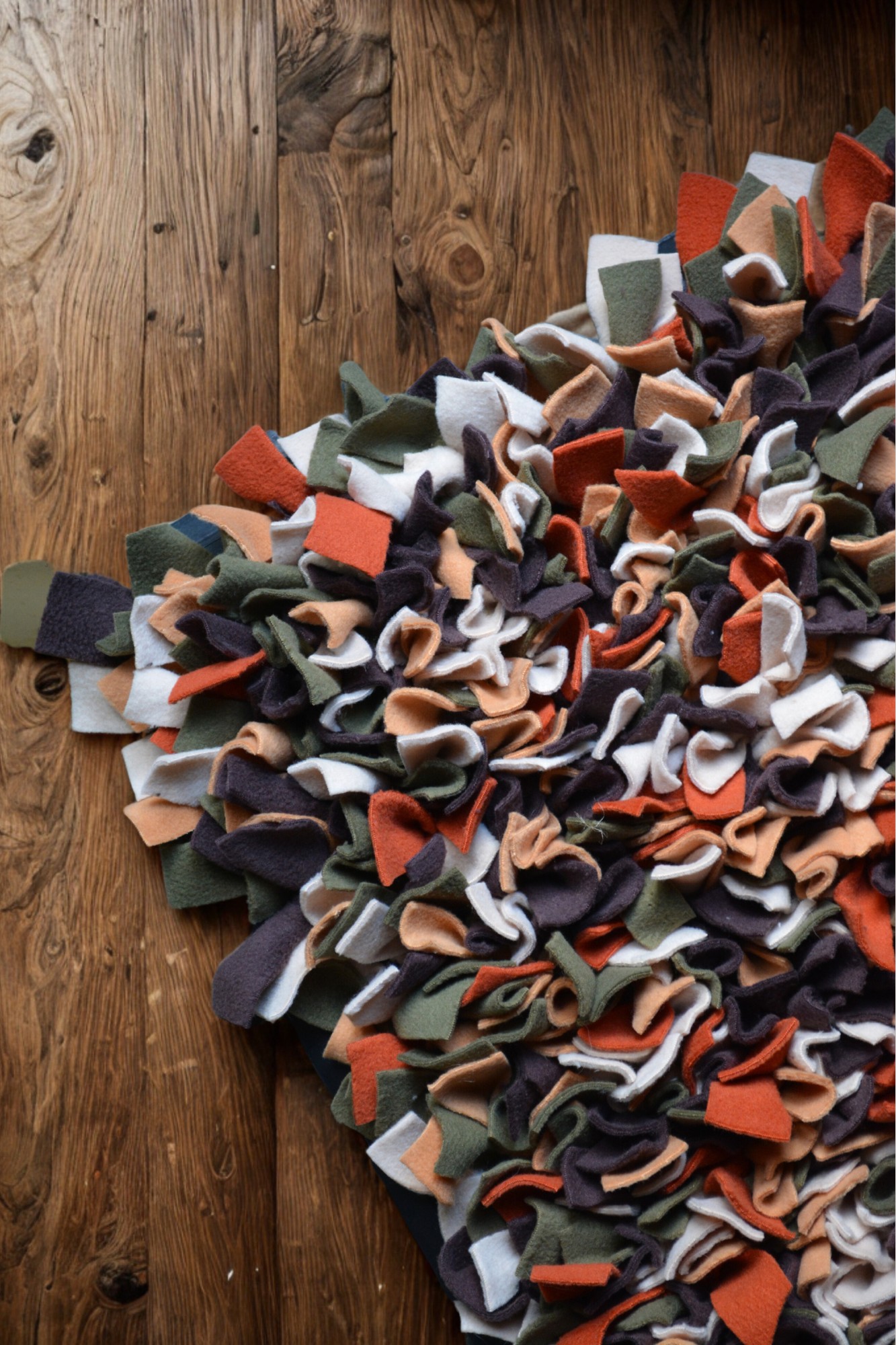 Assembling your own snuffle mat is super simple - just tie the fabric strips around the mat loops. It takes around 2.5 hours to complete, making it a perfect activity to do while watching TV or relaxing in the sun.