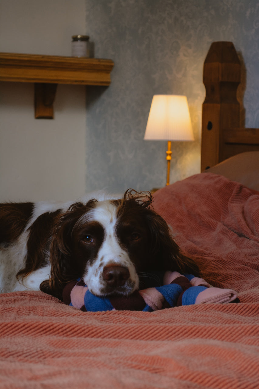 Gentle (non-spin) machine wash at 30 degrees using dog-safe detergent. Air dry.
